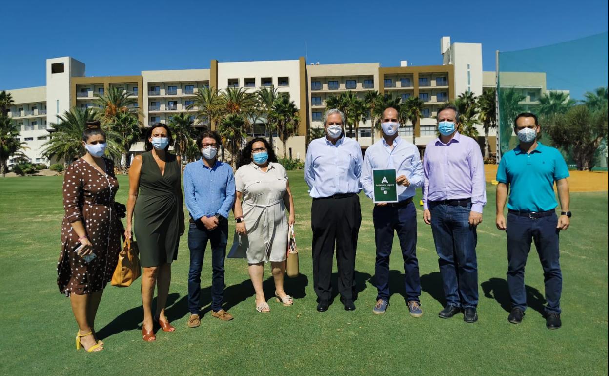 En este sentido, Delgado pudo conocer de la mano del presidente del complejo, Pedro Lope, y del director gerente, Jacobo Lope, las instalaciones, que cuentan con un hotel de 4 estrellas con 284 plazas, un campo de golf con 18 hoyos y un spa; así como las medidas que se han puesto en marcha para evitar los contagios por coronavirus y que les ha valido conseguir el distintivo 'Andalucía Segura'.