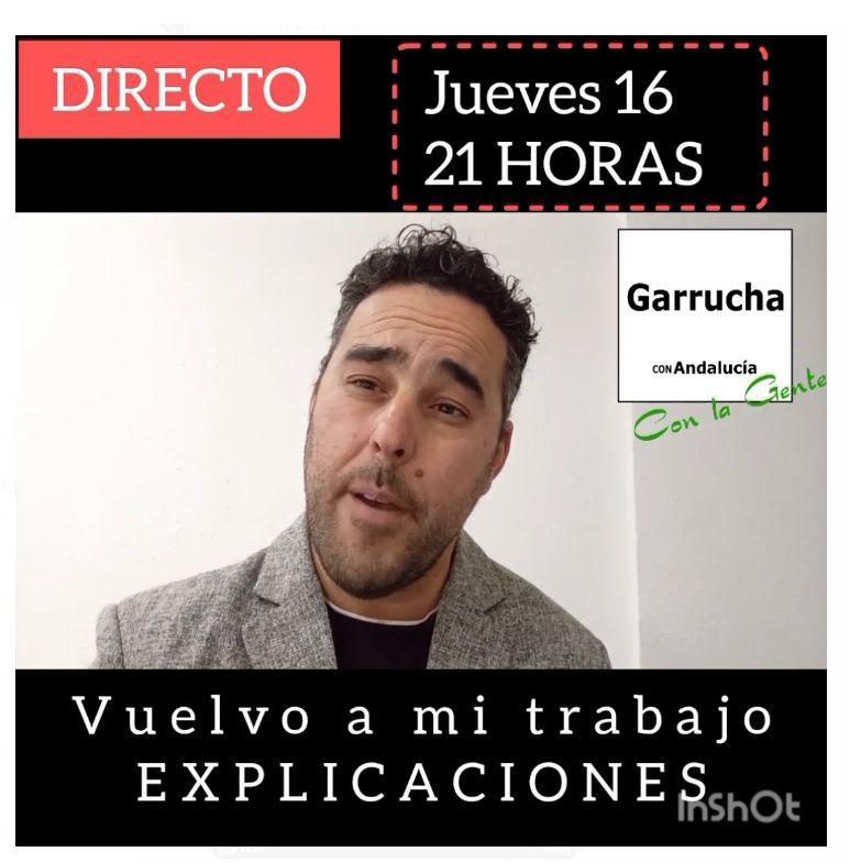 «Para explicaros por qué vuelvo a mi puesto de trabajo como funcionario de la Junta de Andalucía, por qué he renunciado a ser teniente de alcalde de Garrucha, portavoz de Garrucha y también he renunciado a las funciones de Obras y Servicios», adelanta el concejal en un vídeo publicado en redes sociales sobre el propósito de la intervención pública que ha anunciado.