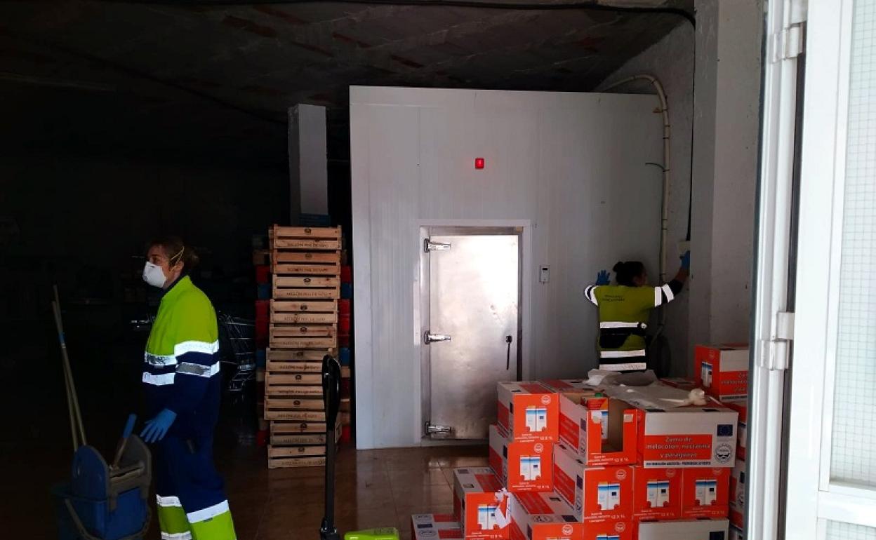 Una vez concluida la desinfección del local de recepción, se dio entrada al lote de alimentos que transporta directamente Cruz Roja hasta el municipio. Los equipos de limpieza volverán a desinfectar las instalaciones y las cajas de material recibido y el miércoles comenzará el reparto de estos alimentos por parte de personal municipal y la red de voluntarios.