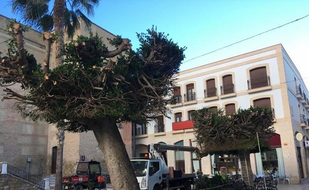 El Ayuntamiento de Vera poda los árboles de la plaza Mayor «por motivos de seguridad»