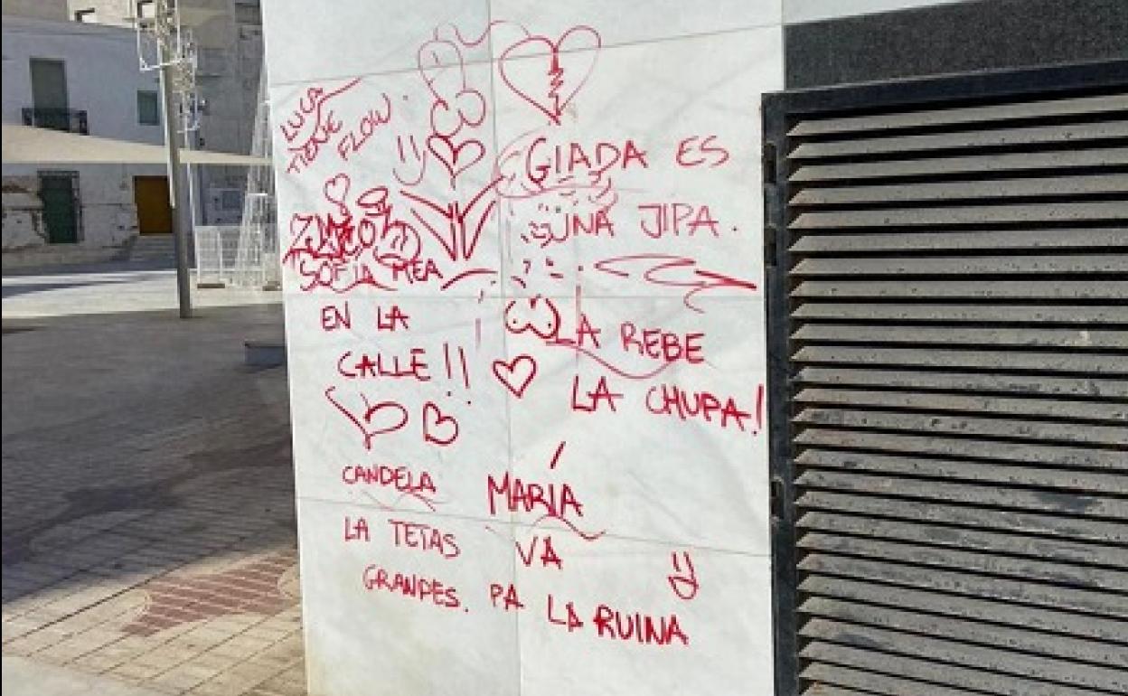 Con frases como «María va pa la ruina» o «Giada es una jipa», entre otras menos amables, amaneció la plaza Pedro Gea de Garrucha el ... pasado 31 de diciembre.