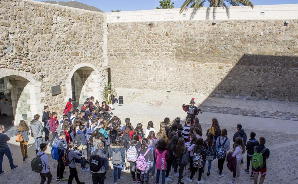 A su vez, a lo largo de su estancia en el municipio carbonero el grupo aprovechó para visitar el castillo de San Andrés acompañado por los alumnos de segundo y tercero de la ESO del instituto Juan Goytisolo, que sirvieron como guías en francés. Allí pudieron vivir de la mano del Marqués del Carpio una visita teatralizada por uno de los monumentos más representativos de este municipio. Los jóvenes visitaron las diferentes dependencias del castillo como la plaza de armas, el aljibe, las caballerizas, las torres y la ermita en honor a San Antonio de Padua, santo patrón de la localidad. Durante el recorrido, los franceses también conocieron de la mano de sus ilustres guías la historia de la villa, la del castillo, su construcción, así como leyendas de Carboneras.