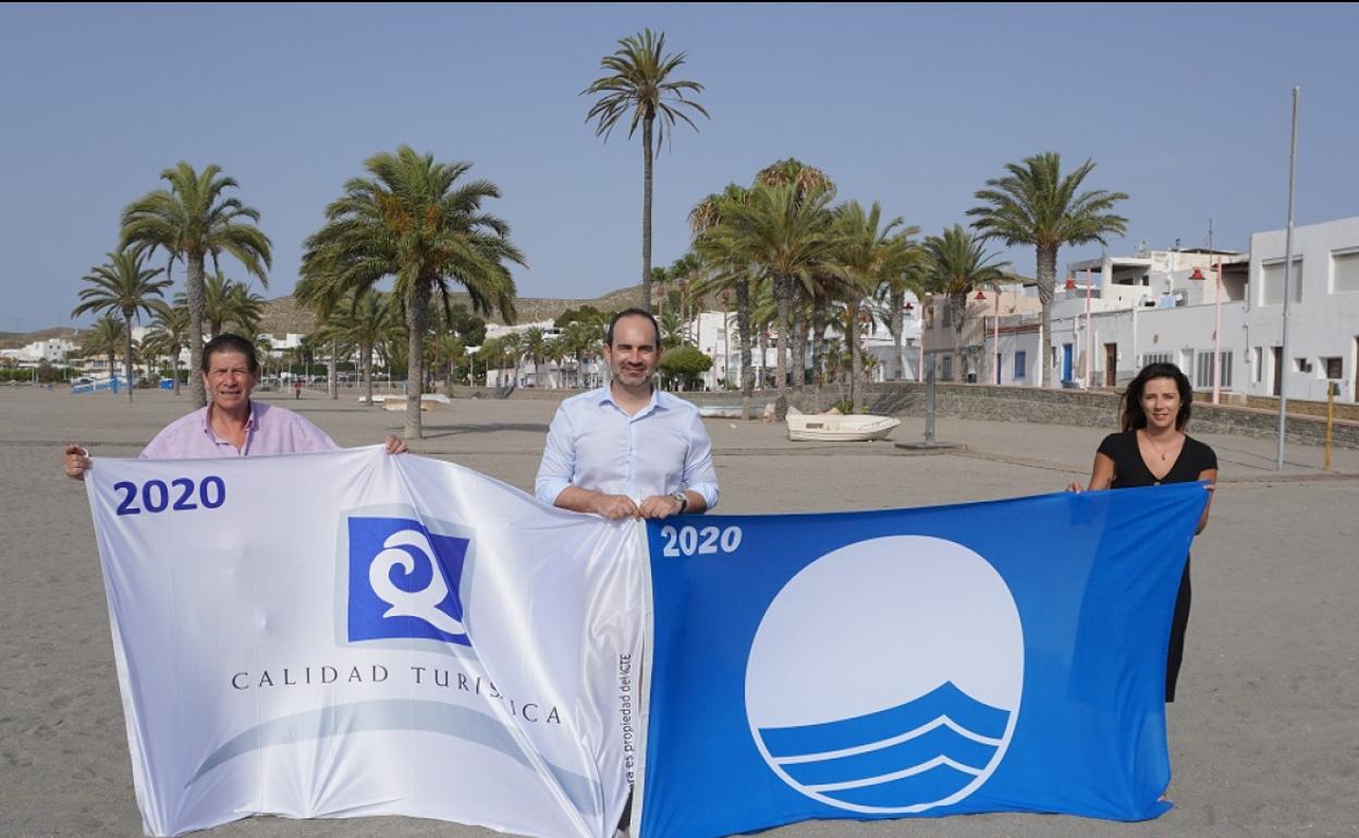 Carboneras ya luce sus tres banderas azules y cuatro de Q de Calidad