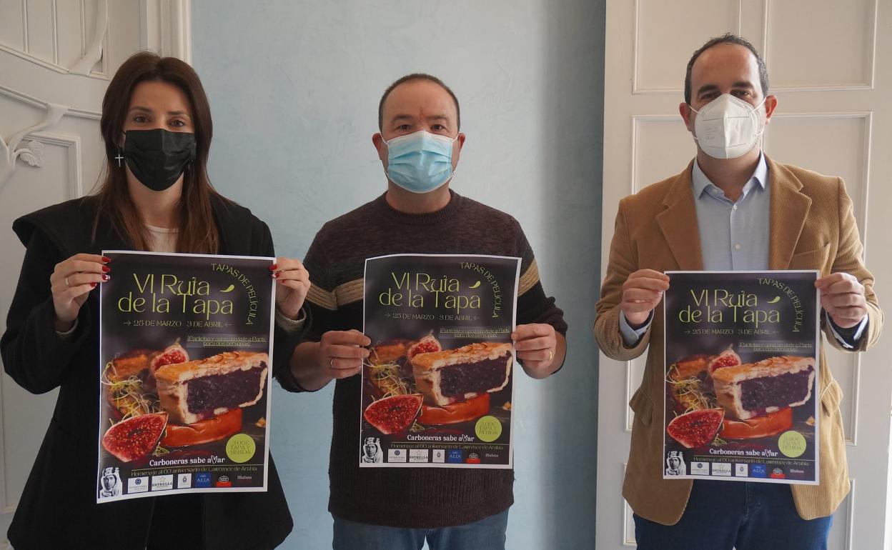 La VI Ruta de la Tapa de Carboneras ha iniciado con un guiño al cine, que tantas alegrías ha dado a la provincia de Almería. ... El alcalde de Carboneras, José Luis Amérigo Fernández, junto al vicepresidente de la Asociación de Empresarios de Carboneras, Juan Moreno, y la concejala de Comercio y Turismo, Isabel Hernández, se encargaron de presentar la ruta, que se realizará entre el 25 de marzo y el 3 de abril en la localidad, y que rendirá un homenaje al 60 aniversario de la película Lawrence de Arabia.