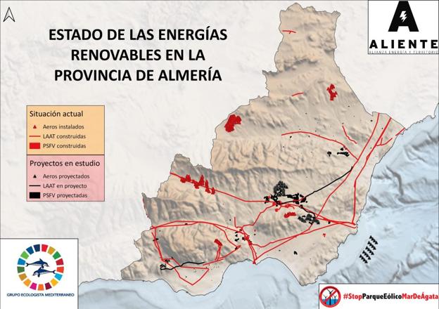 Varias organizaciones ecologistas, entre ellas algunas de gran implantación territorial como Ecologistas en Acción y el Grupo Ecologista Mediterráneo, han apoyado la manifestación convocada el ... próximo día 2 de marzo por la Alianza Energía y Territorio (Aliente) «en defensa de un modelo energético realmetne sostenible» y contrario a «plantas de energías renovables afectan a áreas de alto valor ecológico, agrícola, pesquero, paisajístico, social y cultural, y son hábitat y refugio de especies de flora y fauna exclusivas de nuestros espacios andaluces». «En Andalucía hay proyectos presentados por un total de 23 GW de potencia fotovoltaica, cuando los objetivos nacionales a 2030 según el PNIEC (Plan Nacional Integrado de Energía y Clima) son de 39 GW. Como ejemplo, sólo en el Campo de Tabernas en Almería, la potencia fotovoltaica proyectada es equivalente al 5,4% de la planeada en toda España para 2030», advierten.