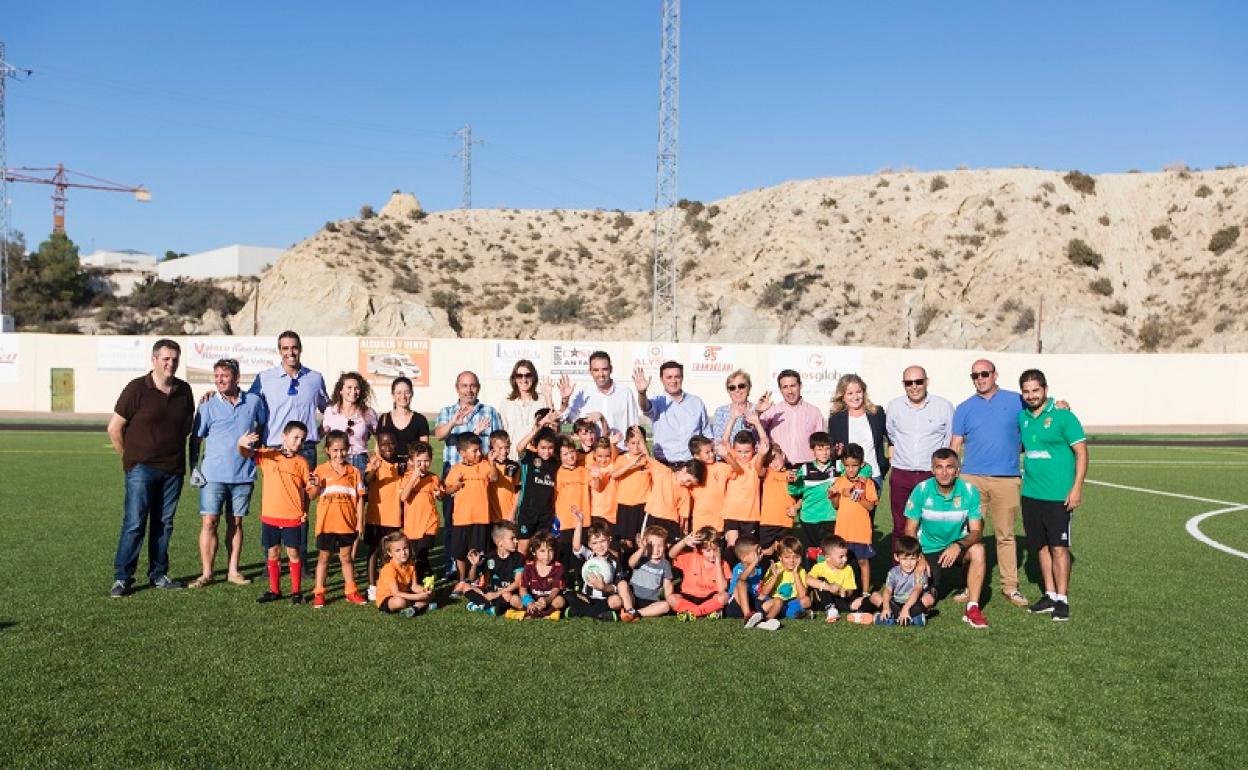 El presidente de la Diputación Provincial de Almería, Javier A. García, y el alcalde de Antas, Pedro Ridao, visitaron el campo de fútbol de Antas para comprobar el resultado del nuevo césped artificial y acompañar los verdaderos protagonistas: los niños y niñas de las Escuelas Deportivas Municipales.