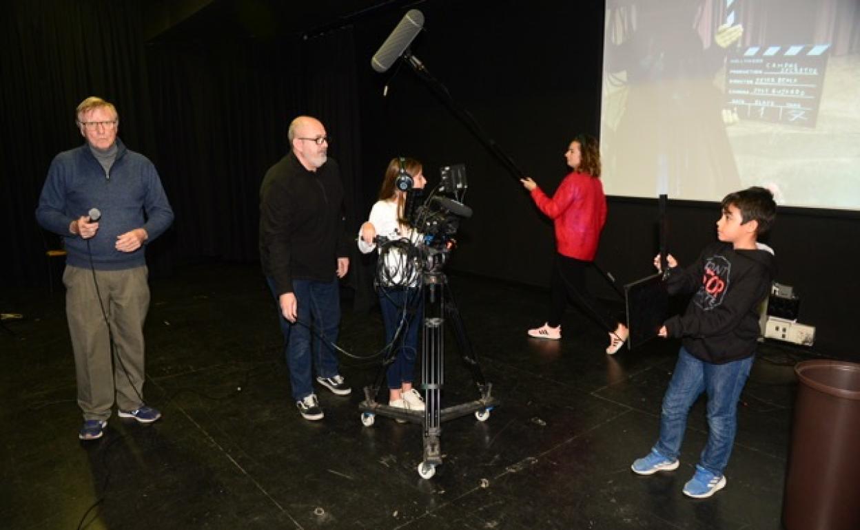 El director cinematográfico José Guijarro puso en escena los equipos técnicos necesarios para improvisar un plató cinematográfico, con los alumnos y profesores asistentes, para crear un guion que reflejara una problemática y su solución. A continuación, claqueta en mano, los jóvenes protagonizaron y grabaron esa película, que se pudo visionar en directo, en pantalla grande, ante la emoción no contenida de todos los asistentes.