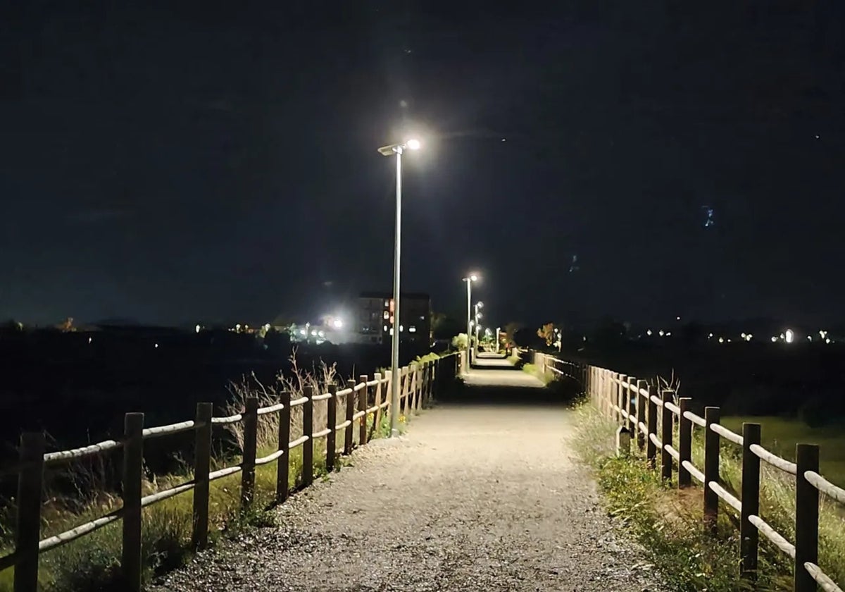La instalación de estas farolas solares tipo led, «no solo mejora la visibilidad, sino que garantiza que la ruta sea totalmente funcional durante las horas nocturnas sin generar costes de consumo eléctrico ni emisiones de CO2, permitiendo la práctica deportiva segura (running, ciclismo, paseo), una vez cae el sol».