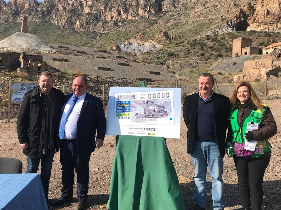 El entorno de la Mina Rica de Pilar de Jaravía, que alberga la Geoda Gigante de Pulpí, fue escenario ayer de la presentación del cupón ... del sorteo de la ONCE, que el próximo miércoles, 23 de enero, lucirá la imagen de la Geoda Gigante.