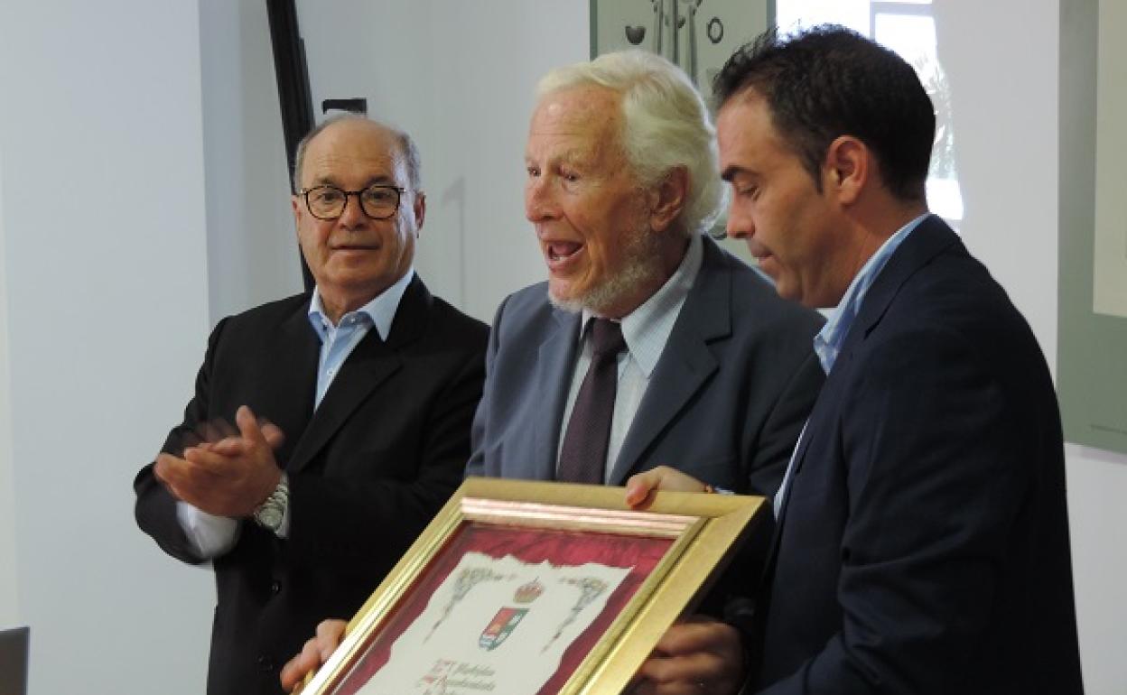 El Alcalde de Cuevas, Antonio Fernández, fue el encargado de entregar la placa y el escudo de la ciudad como símbolo de la distinción otorgada al arqueólogo e historiador que estudió la cultura de El Argar durante más de dos décadas y el yacimiento arqueológico de Fuente Álamo.