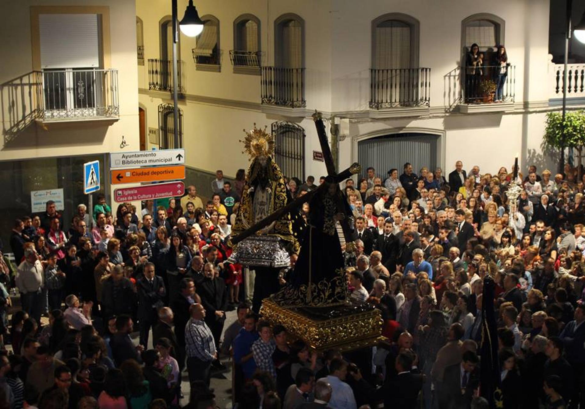 19:00 h. Procesión de la Hermandad Infantil y Juvenil Virgen de los Perdones y Jesús de la Esperanza, compuesta por niños y jóvenes de hasta 25 años. Itinerario: salida desde la Iglesia Parroquial de Nuestra Señora de la Encarnación, Plaza Mayor, C/ Mayor, C/ Virgen de las Angustias, C/ Jacinto Anglada, Plaza D. Antonio Carmona Gallardo, C/ Del Mar, Ermita Nuestra Señora de la Virgen de las Angustias, C/ Del Mar, C/ Juan Anglada, Plaza Mayor, entrada en la Iglesia Parroquial Nuestra Señora de la Encarnación. Curiosidades: En el año 1998, la imagen de la Virgen se quemó. En 1999, se creó una nueva imagen, la cual es llevada por los costaleros de entre 17 y 25 años. Al cumplir 25 años, se pierde la oportunidad de ser los pies de la Virgen. Las cenizas de la Virgen quemada en 1998 se portan en el paso, guardadas en el relicario como una señal de recuerdo. Asimismo, el actual Cristo de la Esperanza fue donado por la Hermandad de la Virgen de las Angustias tras perder el anterior en un accidente en la iglesia el año posterior al incendio.