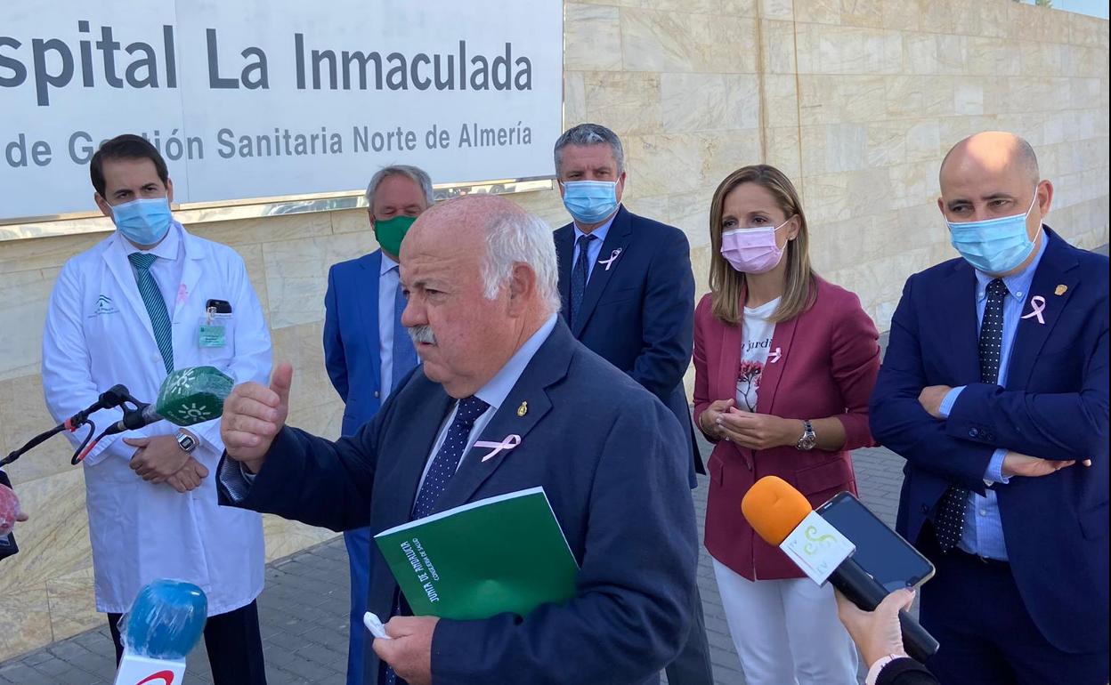 El consejero se ha referido al brote surgido en la planta de Medicina Interna en el Hospital de La Inmaculada de Huércal-Overa, procedente de fuera del hospital según los primeros indicios, como uno de los motivos por los que se han incrementado los ingresos en la comarca, ya que el centro acumula seis pacientes en UCI y otros 16 en planta de los 55 hospitalizaciones que tiene en su conjunto la provincia, once de las cuales se ubican en las UCI.