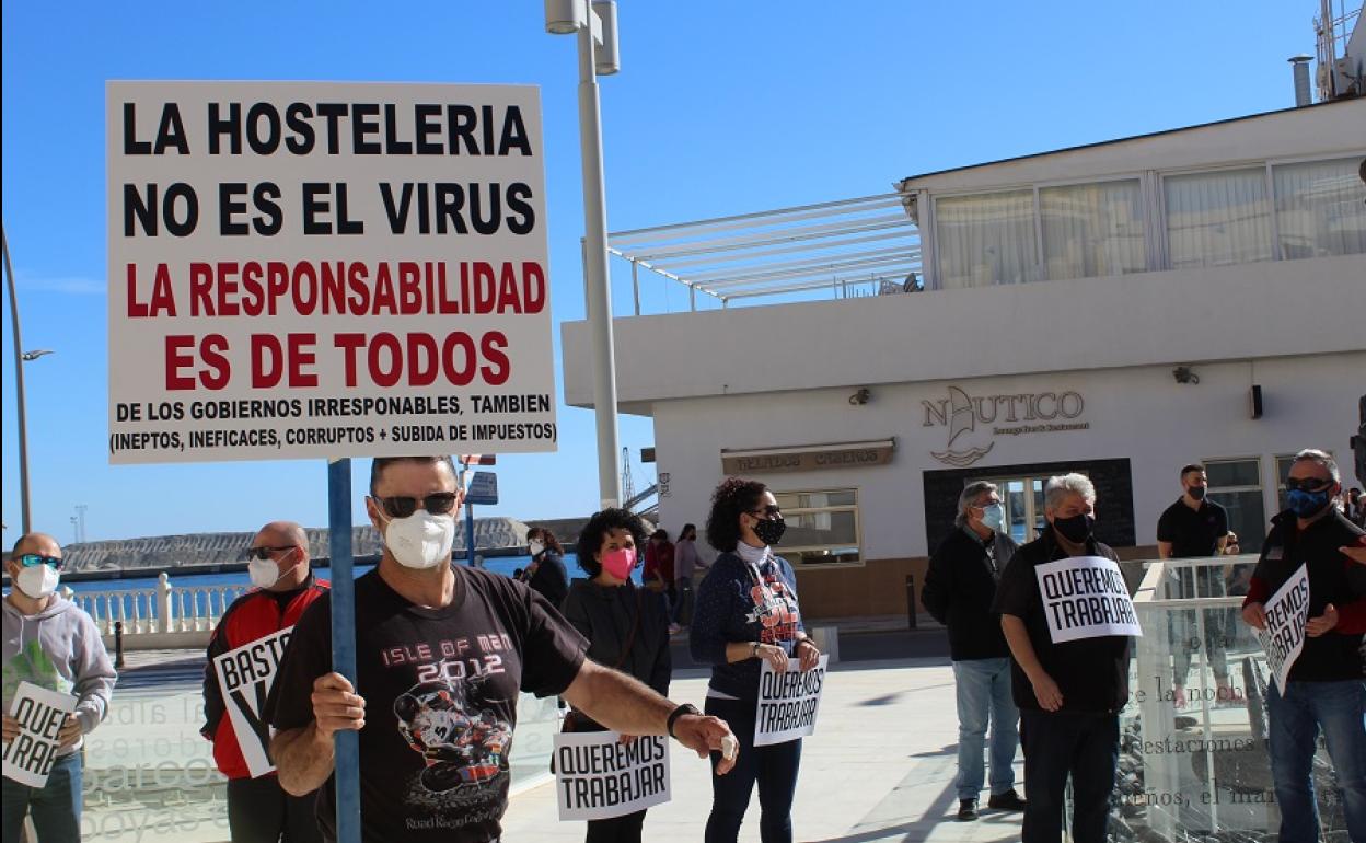 Unas 200 personas relacionadas con las actividades no esenciales y la hostelería se han citado a las 11 de la mañana en la plaza Pedro Gea de Garrucha, vestidos de luto y portando pancartas con mensajes como «¡Basta Ya!, ¡Dejadnos trabajar!». Desde allí han partido hasta el puerto deportivo realizando una marcha donde se mantuvo en todo momento la distancia de seguridad.