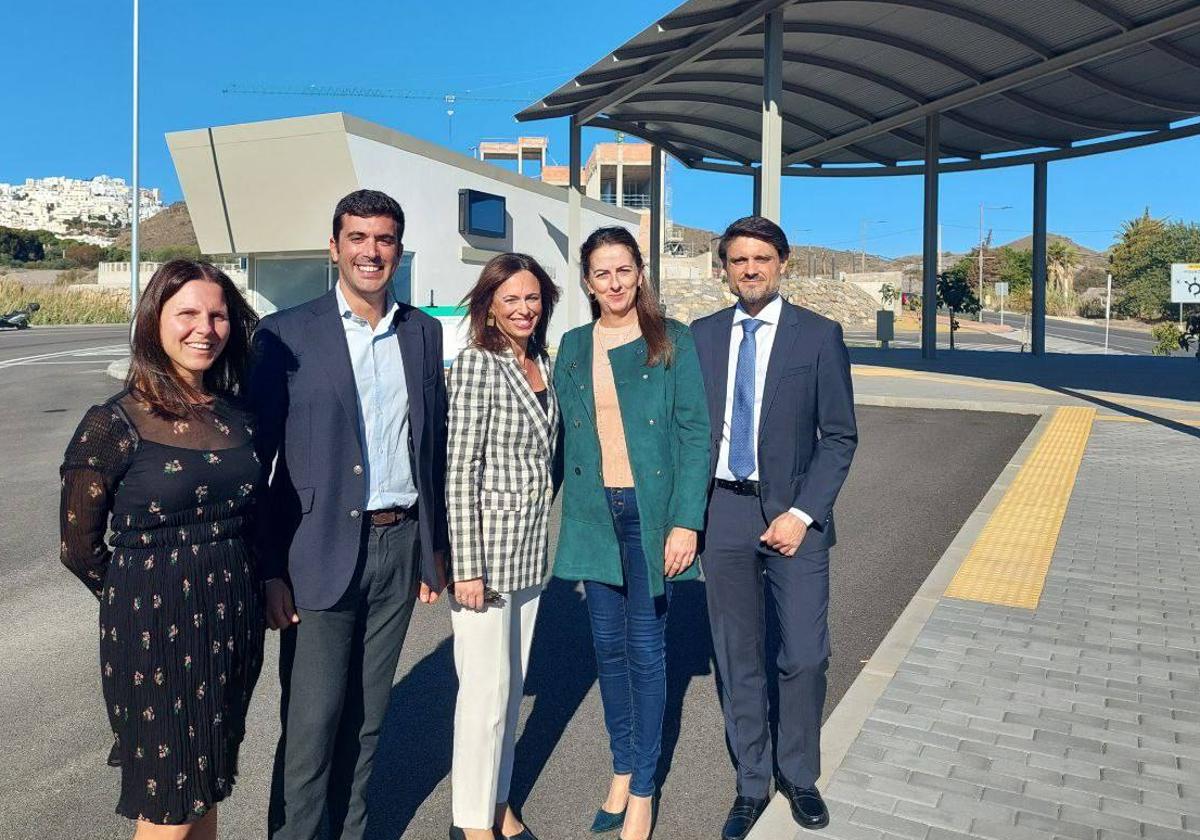 La Junta de Andalucía ha invertido 653.421 euros en la construcción de un intercambiador de transportes que «aglutinará toda la oferta de transporte interurbano de Mojácar, ya sea en verano o invierno», según ha manifestado la consejera, que ha recordado el tirón turístico de un municipio que multiplica su población durante el periodo estival.