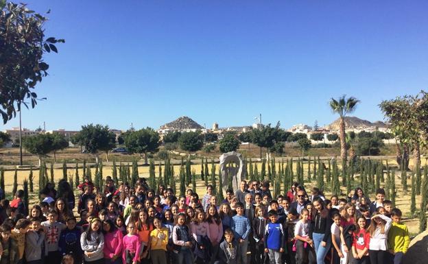 Los escolares de los tres centros educativos de Vera, Ángel de Haro, Cuatro Caños y Reyes Católicos, visitaron en la mañana del viernes el espacio ... verde conmemorativo del V centenario del terremoto de Vera, ubicado en el parque la Rambla, para conocer la escultura allí colocada y que rememora la antigua ciudad de Bayra, destruida por un terremoto en el año 1518, y a las 150 víctimas que se cobró.