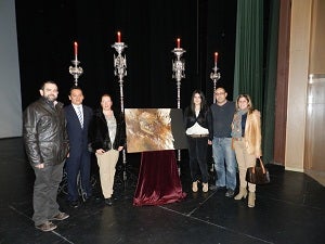 La presentación se realizó en el Teatro Municipal 'Rafael Alberti', cuyo escenario estuvo adornado con enseres de la Cofradía y donde también se mostró la obra, elaborada por la joven artista local, María González Teruel, que también estuvo presente, encargada de elaborar el cartel de la Semana Santa en esta ocasión.