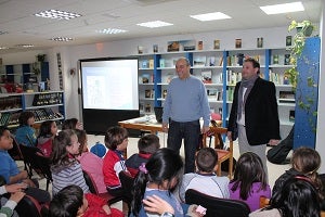 La concejalía de Cultura del Ayuntamiento de Pulpí, dentro de su programa de acercamiento de los niñ@s a la lectura, ha organizado en la mañana de hoy jueves 16 de febrero en la Biblioteca Municipal, a través del CAL , un encuentro entre 60 alumnos de 2º Curso de Primaria del Colegio Público Emilio Zurano Muñoz de Pulpí, con el escritor y Profesor del Instituto "Ibáñez Martín" de Lorca, Juan Ramón Barat.