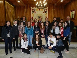 Alumnos de intercambio han visitado el Ayuntamiento de Huércal-Overa donde fueron recibidos por el alcalde, Domingo Fernández, y por parte de los concejales.