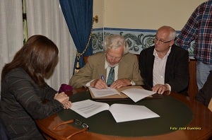 Acompañado por los ediles de cultura y obras, Lola Moreno y José de Haro, además de otros familiares y amigos, el conocido arqueólogo firmó el convenio de cesión en un acto celebrado en el Ayuntamiento de Cuevas del Almanzora.