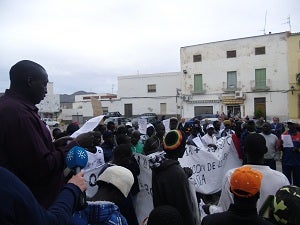Repulsa al asesinato del joven gambiano en Cuevas, incendio y manifestación