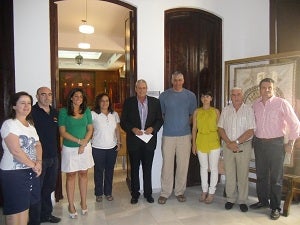 El alcalde de Vera, José Carmelo Jorge Blanco, junto al concejal de Deportes, Juan de la Cruz Belmonte Mena, la diputada provincial del área, Ángeles Martínez, el Presidente de Honor del CB Almería, Juan Esteban Navajas, y el mítico ex jugador de baloncesto, Joe Arlauckas, fueron los encargados ayer de presentar de forma oficial en el Salón de Plenos del Ayuntamiento veratense el Campus CB Almería, organizado por el histórico club, en colaboración con la administración local de Vera y la Diputación Provincial, y con el patrocinio de Deportes Blanes, Hotel México, Parque Acuático Vera, Puleva y Ecocítricos del Andarax.