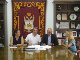 El concejal de Economía y Hacienda, Innovación y Fomento, Juan de la Cruz Belmonte Mena, ha sido el encargado de suscribir el acto del inicio ... del proyecto con José Utrera, responsable territorial de Telefónica de la zona de Andalucía Oriental.
