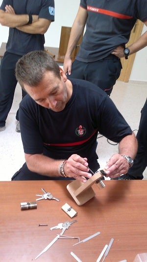 De este modo y con los conocimientos obtenidos de las cerraduras, "los bomberos podrán accionarlas sin tener que echar la puerta abajo, pero sí ... con unas herramientas específicas y sabiendo aplicarlas, aunque habrá ocasiones en que esto se imposible y habrá que derribar la puerta", señalaba el monitor Federico Cerdá .