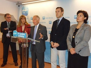 El presidente del Partido Popular de Almería, Gabriel Amat, acompañado por los diputados nacionales Rafael Hernando, Carmen Navarro y Jesús Caicedo, y la senadora María del Mar Agüero, ha anunciado esta mañana en rueda de prensa que el Gobierno va a destinar más de 60 millones de euros y va a aprobar nuevas medidas para los afectados por las riadas del pasado mes de septiembre en el Levante almeriense.