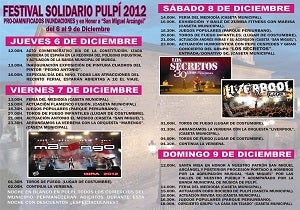 Pulpí presenta el “FESTIVAL SOLIDARIO PULPÍ 2.012”, que se celebrará los días 6, 7, 8 y 9 de Diciembre, Pro-damnificados de las Inundaciones y en honor de su Patrón San Miguel Arcángel