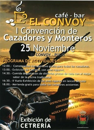 El Café-bar El Convoy, organiza con la colaboración con el Área de Deportes del Ayuntamiento de Pulpí, la 1ª CONVENCIÓN DE CAZADORES Y MONTEROS, que se celebrará durante toda la jornada del próximo domingo 25 de Noviembre en la pedanía de El Convoy de Pulpí.