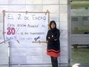 Acompaña la carta dirigida a los miles de usuarios de este servicio, una fotografía a las puertas del SAE huercalense, en la que puede verse una pancarta que dice: «El 2 de enero esta oficina perderá al 80% de sus trabajadores. No más recortes».