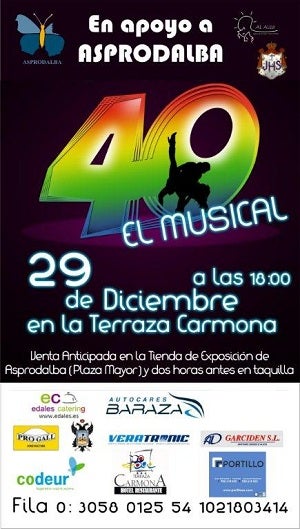 El grupo de teatro 'Al Alba' y la Real Archicofradía de Nuestro Padre Jesús el Nazareno de Vera pondrán en escena el próximo sábado 29 de diciembre a partir de las seis de la tarde el Musical 'Los 40' en apoyo a la Asociación para la Promoción de Personas con Discapacidad Intelectual del Levante Almeriense, Asprodalba.