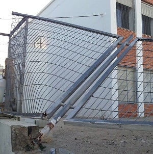 A través de un comunicado de prensa al que se le añaden diferentes imágenes de farolas con cables al descubierto y vallas en el suelo, IU asegura que «se cuenta por meses el tiempo que lleva en esta situación de peligro para los vecinos el vallado que rodea al antiguo colegio público. Además, los agarres de la valla están oxidados y son cortantes por lo que representan un peligro para los niños que a diario pasan por la zona y para los usuarios de la fuente pública, integrada en la misma valla».