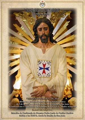 El viernes, día 1 de marzo, tendrá lugar el Besapié a Nuestro Padre Jesús de Pasión Cautivo. La imagen permanecerá expuesta en la capilla de San Juan, sede de la cofradía, desde las 9.00 a las 21.00 horas de forma ininterrumpida, para que todos los cofrades y devotos del Cautivo puedan acercarse a rendirle culto. Al finalizar el Besapié, la banda de cornetas y tambores "Madre Asunción" ofrecerá un concierto en la capilla de San Juan.