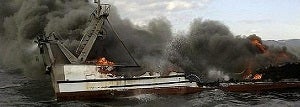 Rescatan a cuatro tripulantes de un pesquero incendiado en Carboneras