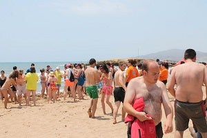 Pero la actividad en la que más energías pusieron todos los "Playeros" fue la improvisada pista de baile a la orilla de la playa en la que "todos" disfrutaron de los ritmos más modernos y veraniegos, contagiando a todos los acompañantes y turistas que se encontraban esta mañana en la playa Mar Rabiosa de San Juan de los Terreros.