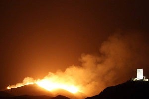 La tormenta eléctrica comenzaba sobre las diez de la noche, rayos que iluminaban la noche del Levante almeriense y hacía presagiar una noche agitada. Empezaron los relámpagos y truenos a escucharse más cercanos y a llover. El viento no tardó en aparecer y en Cuevas del Almanzora ya comenzaron a ver iluminarse la sierra, un incendio que podía verse desde varios puntos del municipio huercalense, se producía cerca del Castillo de Huércal-Overa y se divisaba desde otros pueblos, incluso. El incendio está activo, Infoca, bomberos y cuerpos de seguridad ya se han movilizado, llueve pero también hace viento y eso parece dificultar las tareas para controlar las llamas. Las redes sociales ya están llenas de fotografías tomadas desde Huércal-Overa y Cuevas del Almanzora.