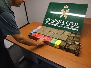 En una actuación preventiva de seguridad ciudadana, realizada por la Guardia Civil a mediados de la pasada semana, agentes de la Unidad de Seguridad Ciudadana de la Comandancia de Almería y Destacamento de Tráfico de Huércal Overa (Almería), proceden a la detención H. B., de 31 años y domiciliado en Cofrentes (Valencia), como presunto autor de un delito de contra la salud pública y por el robo de un vehículo.