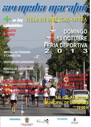 Hasta el próximo miércoles 9 de octubre se encuentra abierto el plazo de inscripción en la XIV media maratón y 10 km saludables que pone en marcha el Ayuntamiento de Huércal-Overa a través de la concejalía de Deportes.