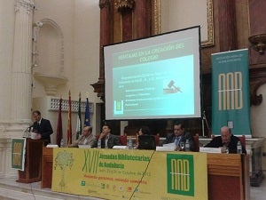 Francisco Ruiz, bibliotecario de Vera, intervenía en las XVII Jornadas Bibliotecarias de Andalucía recientemente celebradas en Jaén. En ellas, Ruiz hizo una cuidada intervención en la que habló sobre las ventajas que supone la creación de un futuro Colegio Profesional de Bibliotecarios, Archiveros y Documentalistas en Andalucía, intentando buscar las sinergias y aquellos puntos comunes que nos unen como profesionales en la gestión de la información en nuestra comunidad autónoma. La iniciativa de Francisco Ruiz, junto a su presidente A. Tomás Bustamante, tuvo muy buena acogida entre los más de 200 profesionales presentes, debido a las posibilidades que encierra el posible Colegio de abrir nuevos caminos y horizontes en la profesión, más acorde con los retos de la sociedad del siglo XXI.