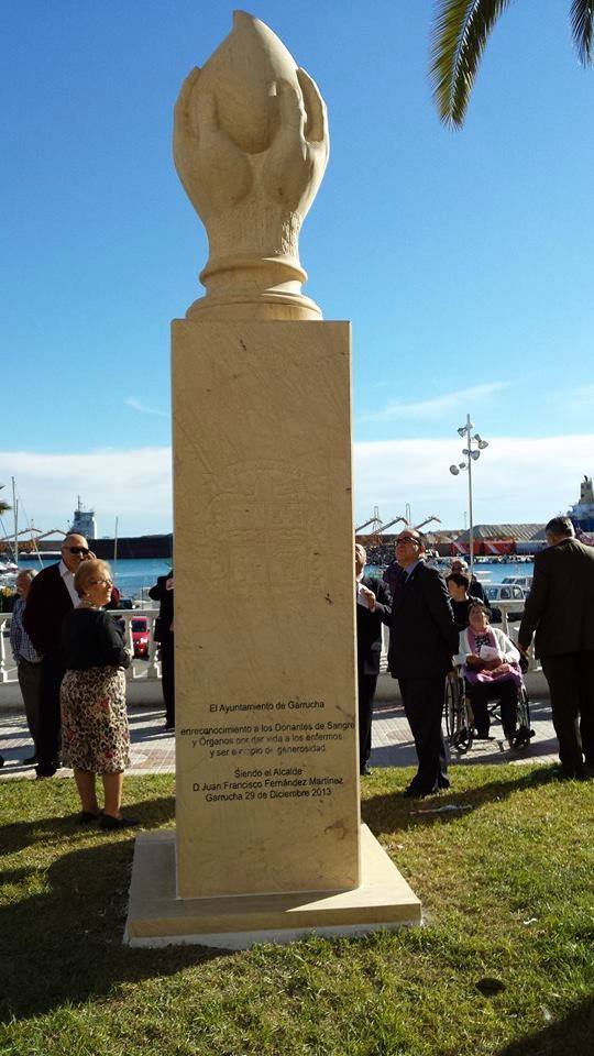 Garrucha luce ya un nuevo monumento, frente al Centro Cultural de la localidad, a través del que se reconoce a los donantes de sangre y al colectivo que fomenta, colabora y promueve las campañas para la donación. El monolito que representa dos manos sosteniendo una gota 'de vida', se inauguró el pasado 29 de diciembre dentro de la celebración del XV Día Provincial del Donante de Sangre que organiza anualmente en un pueblo distinto de la provincia la Asociación de Donantes de Sangre, Tejidos y Órganos de Almería. En el acto estuvieron presentes miembros del equipo de Gobierno garruchero, con su alcalde Juan Francisco Fernández a la cabeza, además de la Directiva de la Asociación de Donantes y la banda de música de la Asociación Musical 'Ex Mari Orta'.