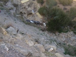 Una motorista resultó herida tras salirse de la vía y caer por un barranco de unos diez metros de profundidad. Los hechos se produjeron en torno a las 14 horas de la tarde. Al parecer, una mujer, de origen alemán y de 36 años, perdió el control de su moto de gran cilindrada cuando circulaba por la carretera Al-3107, vía que une los municipios almerienses de Níjar y Lucainena de las Torres.