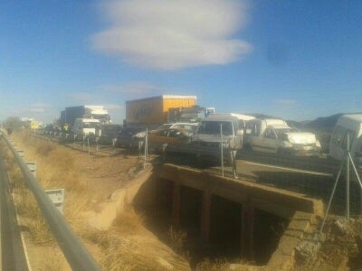 Dieciocho vehículos se vieron implicados en un accidente múltiple de tráfico ocurrido en la Autovía A-7, en el termino municipal de Puerto Lumbreras, a la altura del km 658, en el límite de provincia con Almería. En concreto, se vieron implicados en el siniestro tres camiones y quince turismos que colisionaron por causas que no han trascendido. Los servicios de emergencias tuvieron que liberar al conductor de uno de los camiones implicados, mientras que otros afectados por el accidente quedaron bloqueados en sus vehículos. El número total de afectados en el accidente asciende a 13 personas, de las que cinco son mujeres, dos de ellas embarazadas, y ocho son hombres, todos ellos trasladados al Hospital Rafael Méndez de Lorca.