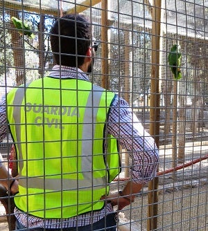 Los agentes encargados de la investigación, realizan la inspección ocular de la jaula de los animales, comprobando como la misma había sido forzada, continuando con las pesquisas necesarias para la localización de los loros y del autor.