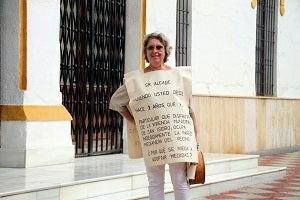 Silvia Valera lleva desde el lunes manifestándose cada mañana a las puertas del Ayuntamiento de Huércal-Overa para pedir que se haga caso a su solicitud de hace ya seis años de que se deje de ocupar parte de su fachada. La historia, es cuanto menos, sorprendente, no sólo porque la solución a su problema no costaría más de media hora, sino porque todas las circunstancias que rodean el asunto son, si más no, sorprendentes.