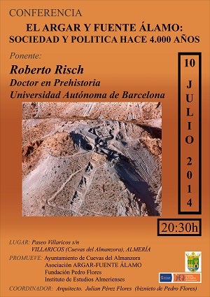 Roberto Risch, Doctor en Prehistoria por la Universidad Autónoma de Barcelona, ofrecerá el próximo 10 de julio una conferencia sobre 'El Argar y Fuente Álamo: sociedad y política hace 4.000 años'. La conferencia versará sobre la formación y el final repentino de la primera sociedad de tipo estatal de Europa occidental hace 4000 años. Se explicará la organización social y económica de dos asentamientos clave del grupo arqueológico de El Argar: Fuente Álamo, en Cuevas del Almanzora, y La Bastida de Totana. La comparación entre ambos yacimientos abre ventanas hacia un pasado hasta ahora desconocido, pero estrechamente relacionado con los retos ecológicos, sociales y políticos del mundo actual.