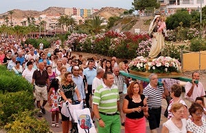 La Virgen del Carmen fue acompañada por cientos de personas en su romería por las playas de San Juan de los Terreros
