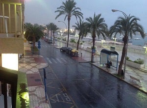 La lluvia no ha querido retirarse del todo de la comarca del Levante almeriense y cumpliendo las predicciones y después de una noche tormentosa en numerosos municipios, hoy sigue lloviendo. Bastante, pero sin 'tormenta' a estas horas. No obstante, la alerta amarilla por este fenómeno meteorológico sigue activa. La Agencia Estatal de Meteorología ha prolongado el aviso hasta las seis de la mañana de mañana domingo. Vera, en plena Feria y después de haber tenido que suspender su primera corrida de toros el pasado jueves, ha pospuesto el concierto de esta noche de Medina Azahara para el próximo jueves 2 de octubre. La corrida de esta tarde aún está en duda. No se han producido incidencias de consideración por la lluvia en la zona. Eso sí, la vigilancia y la precaución siguen vigentes. Desde la página Web 'Garrucha en Almería= Un pueblo Comercial, Competente y Precioso' llegaban imágenes como la que acompaña este artículo del inicio de la tormenta de anoche en el pueblo.