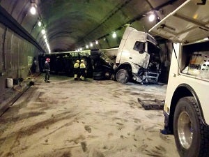 Vuelca un camión en el túnel de Lorca y provoca largas retenciones