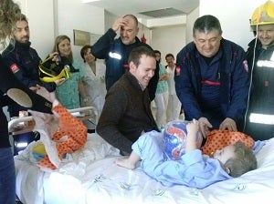 Los Bomberos del Levante Almeriense acuden otro año más al hospital La Inmaculada de Huércal-Overa para entregar regalos a los niños que permanecen ingresados, en un día tan señalado para ellos. Un total de siete bomberos, algunos ataviados con traje y casco de intervención, han visitado esta mañana la zona de pediatría alegrando así el día de reyes a todos los niños, sus familiares y a los trabajadores.